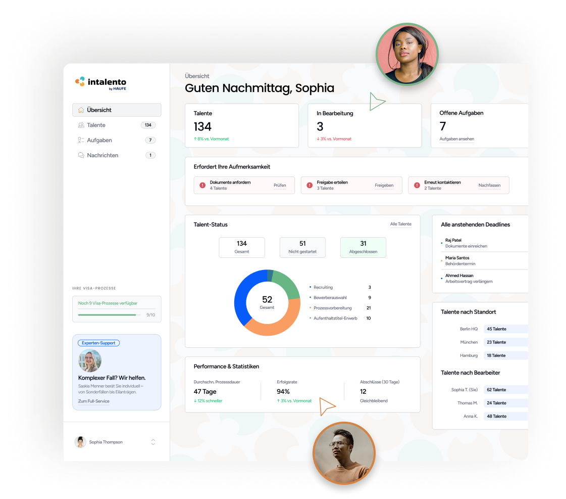 Bereit für Ihr globales HR-Upgrade? Mit intalento automatisieren Sie Visaanträge und schaffen Freiräume, damit Ihr Team sich auf das Wesentliche konzentrieren kann.